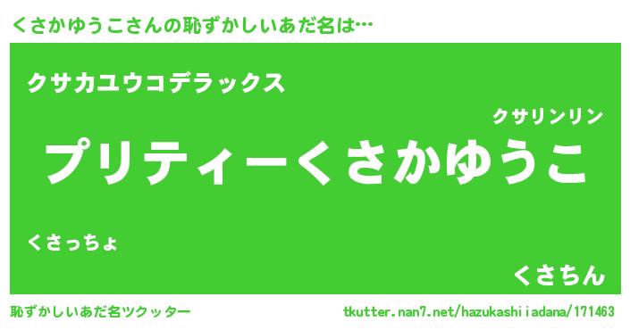 | ヒーロー風カッコイイあだ名 | 『スーパークサカユウコ』『黄金騎士クサ』 |