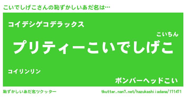 | 男性向けラノベタイトル風あだ名 | 『コイデシゲコスレイヤー』 |