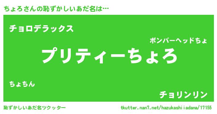 | 意味不明あだ名 | 『ペロリンちょろ』『自称ちょろ』 |