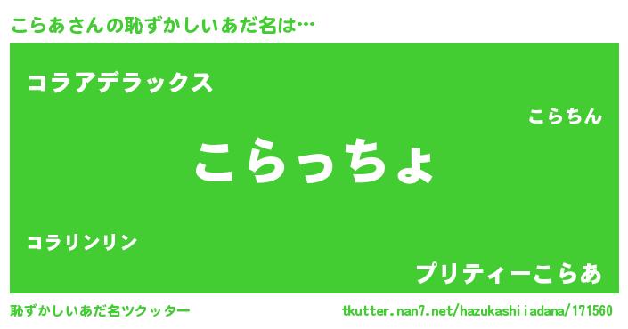 | 意味不明あだ名 | 『こらあフォーエバー』『自称こらあ』 |