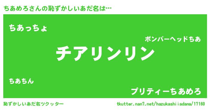 | 意味不明あだ名 | 『めかぶ科ちあめろ属』 |