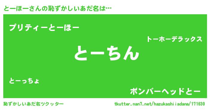| ヘコむあだ名 | 『とーほー(笑)』『とーにー』『牛乳』 |