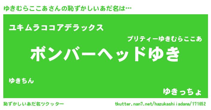 | 男性向けラノベタイトル風あだ名 | 『おまえをオタクにしてやるから、俺をゆきむらここあにしてくれ! 』 |