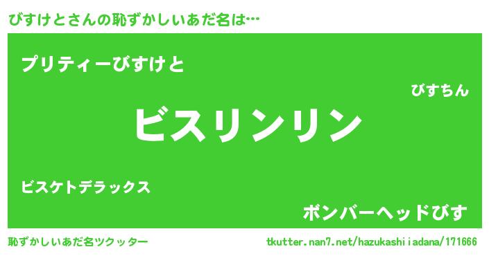 | ヘコむあだ名 | 『びすっ子』『びすもー』『豆乳』 |