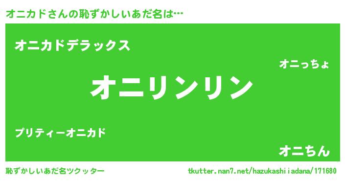 | ヘコむあだ名 | 『オニっちょ』『オニカド(小並感)』 |