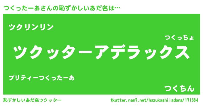 | 意味不明あだ名 | 『自称つくったーあ』 |