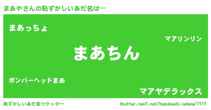 | 男性向けラノベタイトル風あだ名 | 『まあやという概念が存在しない退屈な世界 』 |