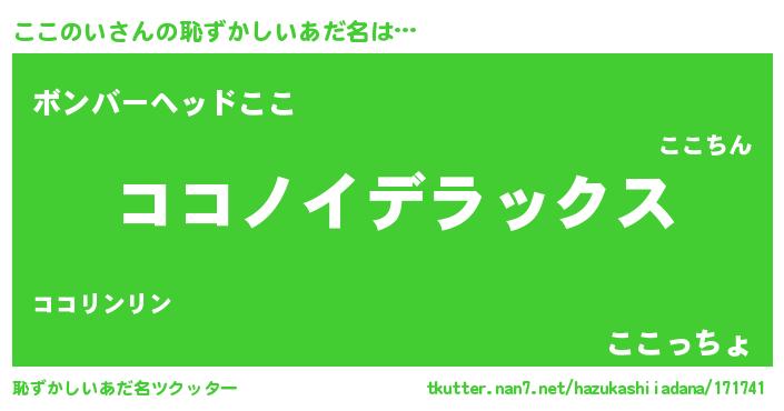 | ヒーロー風カッコイイあだ名 | 『究極戦士ココノイ』『仮面ココダー』 |