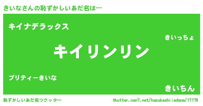 | 男性向けラノベタイトル風あだ名 | 『きいなの嫁は女の子じゃないと思った?』 |