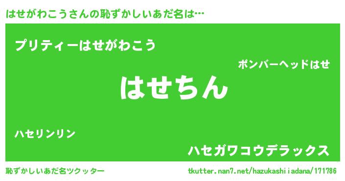 | ヘコむあだ名 | 『はせがわこう(小並感)』『はせふぇ~』 |