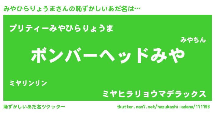 | 意味不明あだ名 | 『眠気覚ましガムみやひらりょうま味』 |