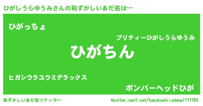 | 意味不明あだ名 | 『永久保存ひがしうらゆうみ』 |