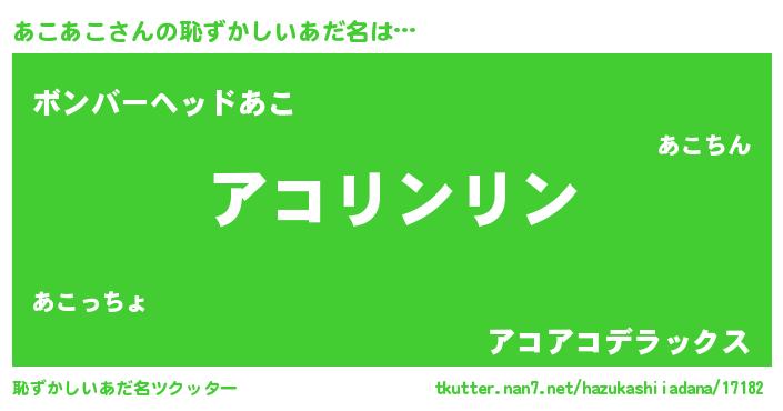 | ポケモン風あだ名 | 『ヒアコアコ』『アックウザ』 |