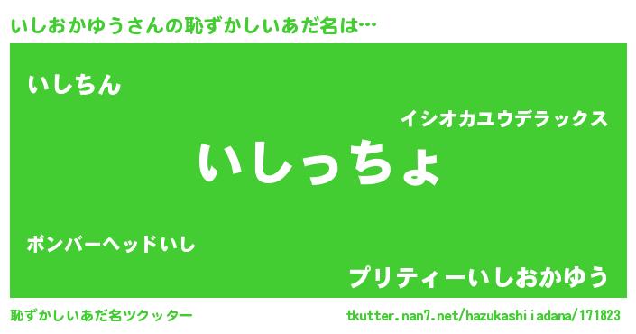 | 男性向けラノベタイトル風あだ名 | 『この素晴らしい世界にいしおかゆうを!』 |