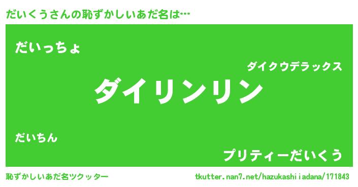 | 欧米人風あだ名 | 『アンジェラ・だいくう』 |