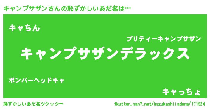 | 男性向けラノベタイトル風あだ名 | 『緋弾のキャンプサザン』 |