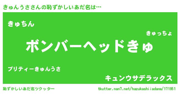 | 欧米人風あだ名 | 『ダニエルきゅんうさ』 |