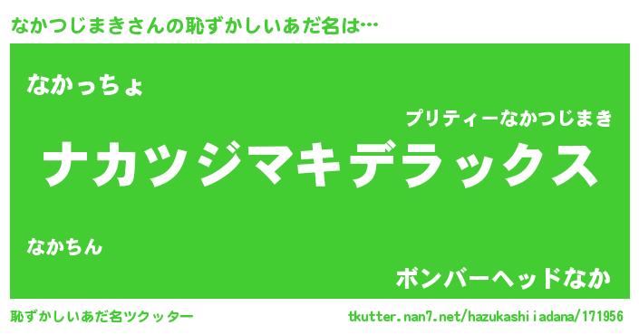 | 男性向けラノベタイトル風あだ名 | 『なかつじまきに滅ぼされるだけの簡単なお仕事です』 |
