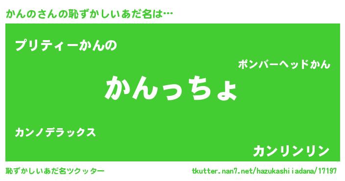 | 意味不明あだ名 | 『住所不定無職かんの(6歳)』 |