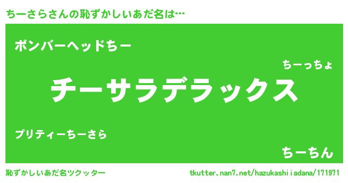 | ヒーロー風カッコイイあだ名 | 『ウルトラ戦士チーサラ』『ネオチーサラ』 |