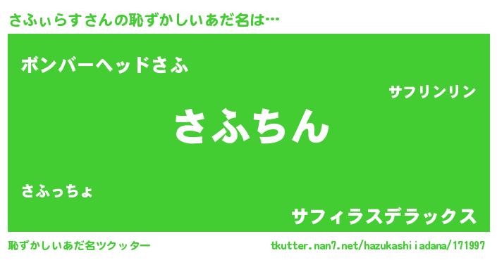 | 男性向けラノベタイトル風あだ名 | 『さふぃらすという概念が存在しない退屈な世界 』 |