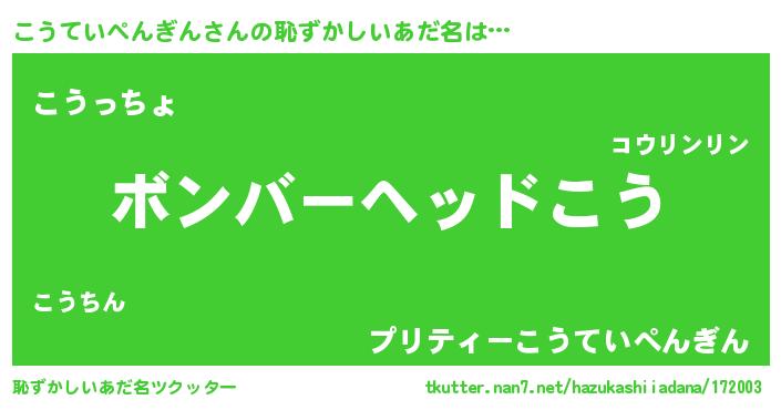 | 欧米人風あだ名 | 『ダニエルこうていぺんぎん』 |
