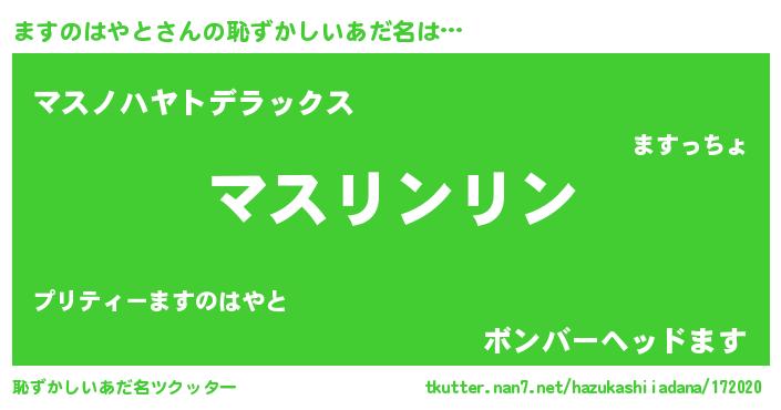 | 男性向けラノベタイトル風あだ名 | 『この素晴らしい世界にますのはやとを!』 |