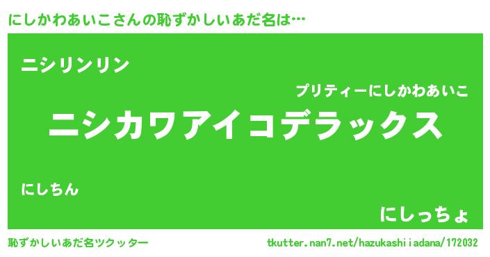 | 肩書あだ名 | 『にしかわあいこ閣下』 |