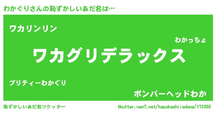 | 男性向けラノベタイトル風あだ名 | 『この素晴らしい世界にわかぐりを!』 |
