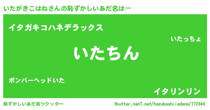 | ヘコむあだ名 | 『いたがきこはね(苦笑)』『いたっ子』 |