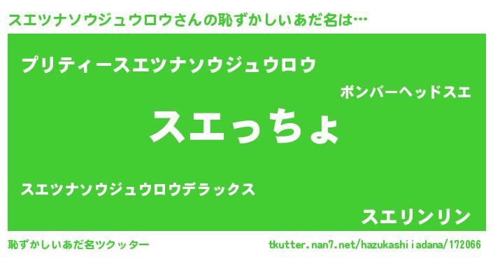 | 男性向けラノベタイトル風あだ名 | 『やはりスエツナソウジュウロウの青春ラブコメはまちがっている 』 |