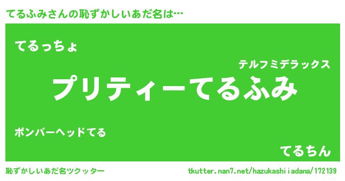 | 男性向けラノベタイトル風あだ名 | 『テルフミスレイヤー』『てるふみの憂鬱』 |