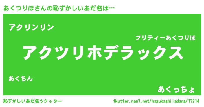 | ヘコむあだ名 | 『あくっぺ』『つくし』『あくふぇ~』 |