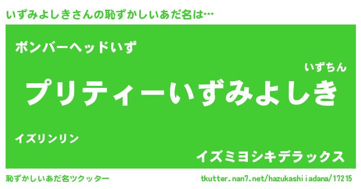 | ヒーロー風カッコイイあだ名 | 『スーパーイズミヨシキ』『魔戒騎士イズ』 |