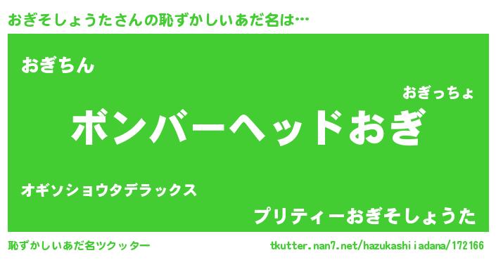 | ヒーロー風カッコイイあだ名 | 『慈愛の使者おぎそしょうた』 |