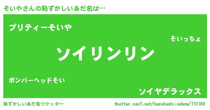 | 男性向けラノベタイトル風あだ名 | 『ソイヤスレイヤー』『そいやの憂鬱』 |