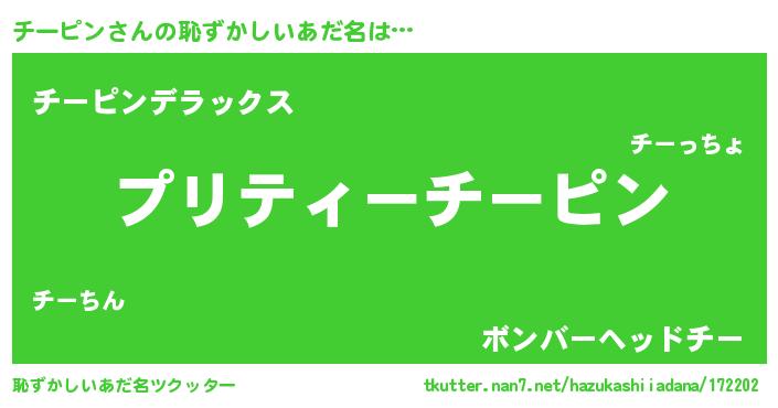 | ヒーロー風カッコイイあだ名 | 『スーパーチーピン』『最強戦士チーピン』 |
