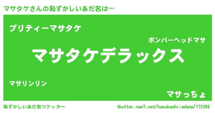 | ヒーロー風カッコイイあだ名 | 『超時空戦士マサタケ』『仮面マサダー』 |