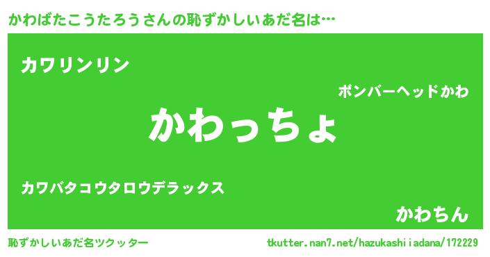 | 男性向けラノベタイトル風あだ名 | 『やはりかわばたこうたろうの青春ラブコメはまちがっている 』 |