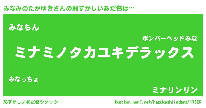| 意味不明あだ名 | 『自称みなみのたかゆき』 |