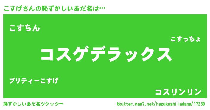 | ヘコむあだ名 | 『こすげ(震え声)』『こすお』 |