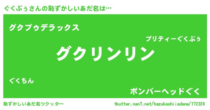 | 意味不明あだ名 | 『とにかく怪しいぐくぶぅ』 |