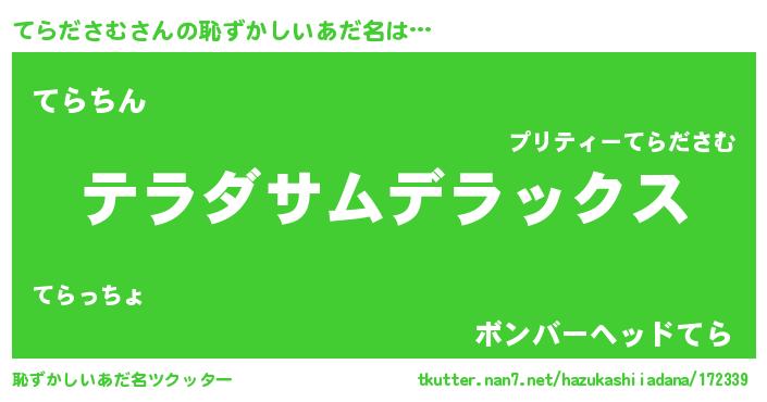 | 伝説のあだ名 | 『聞きしに勝る吟遊詩人てらださむ』 |