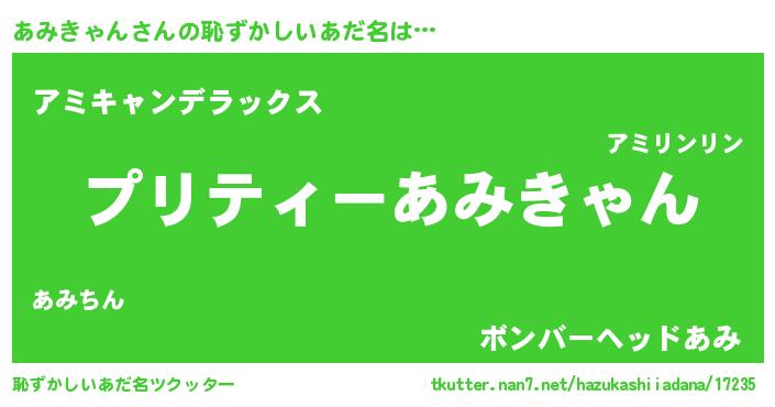 | 意味不明あだ名 | 『ペロリンあみきゃん』『自称あみきゃん』 |