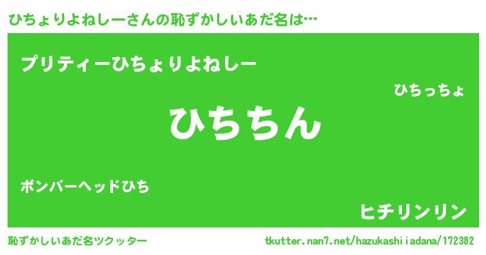 | ヘコむあだ名 | 『ひちょりよねしー(笑)』『ひちふぇ~』 |