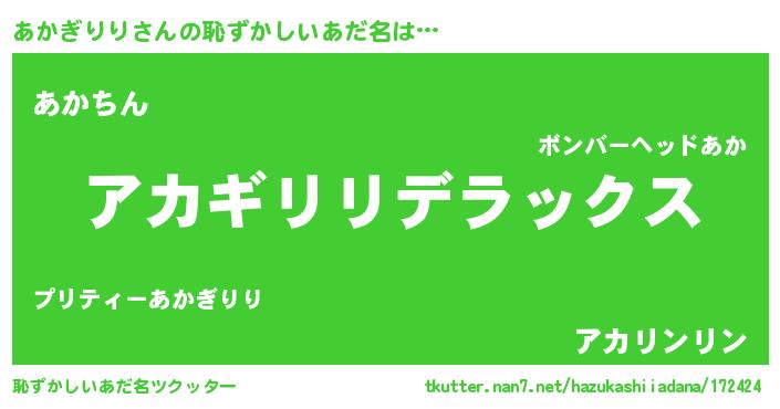 | ヒーロー風カッコイイあだ名 | 『仮面アカダー』『ネオアカギリリ』 |