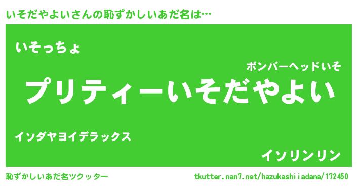 | 欧米人風あだ名 | 『アンジェラ・いそだやよい』 |