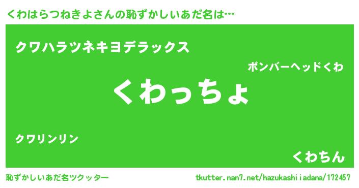 | 意味不明あだ名 | 『くわはらつねきよフォーエバー』 |