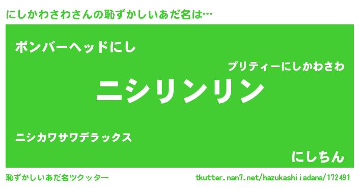 | ヘコむあだ名 | 『にしっちょ』『にしかわさわ(笑)』 |