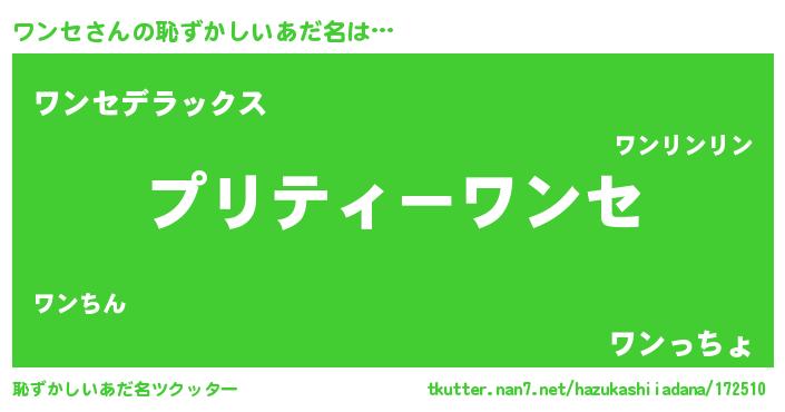 | 意味不明あだ名 | 『住所不定無職ワンセ(7歳)』『自称ワンセ』 |